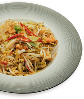 Noodles from sago starch with chewy texture, stir-fried with chili sauce, shrimp, bean sproutsNoodles from sago starch with chewy texture, stir-fried with chili sauce, shrimp, bean sprouts and scallions.