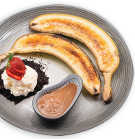 Simple dessert that will melt in your mouth of banana split and Brûlée with vanilla ice cream.