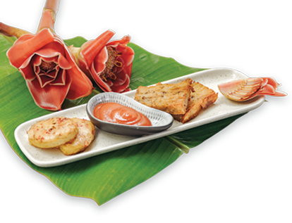 One of our signature desserts of homely sticky rice cake with melting chocolate & coconut cream inside.